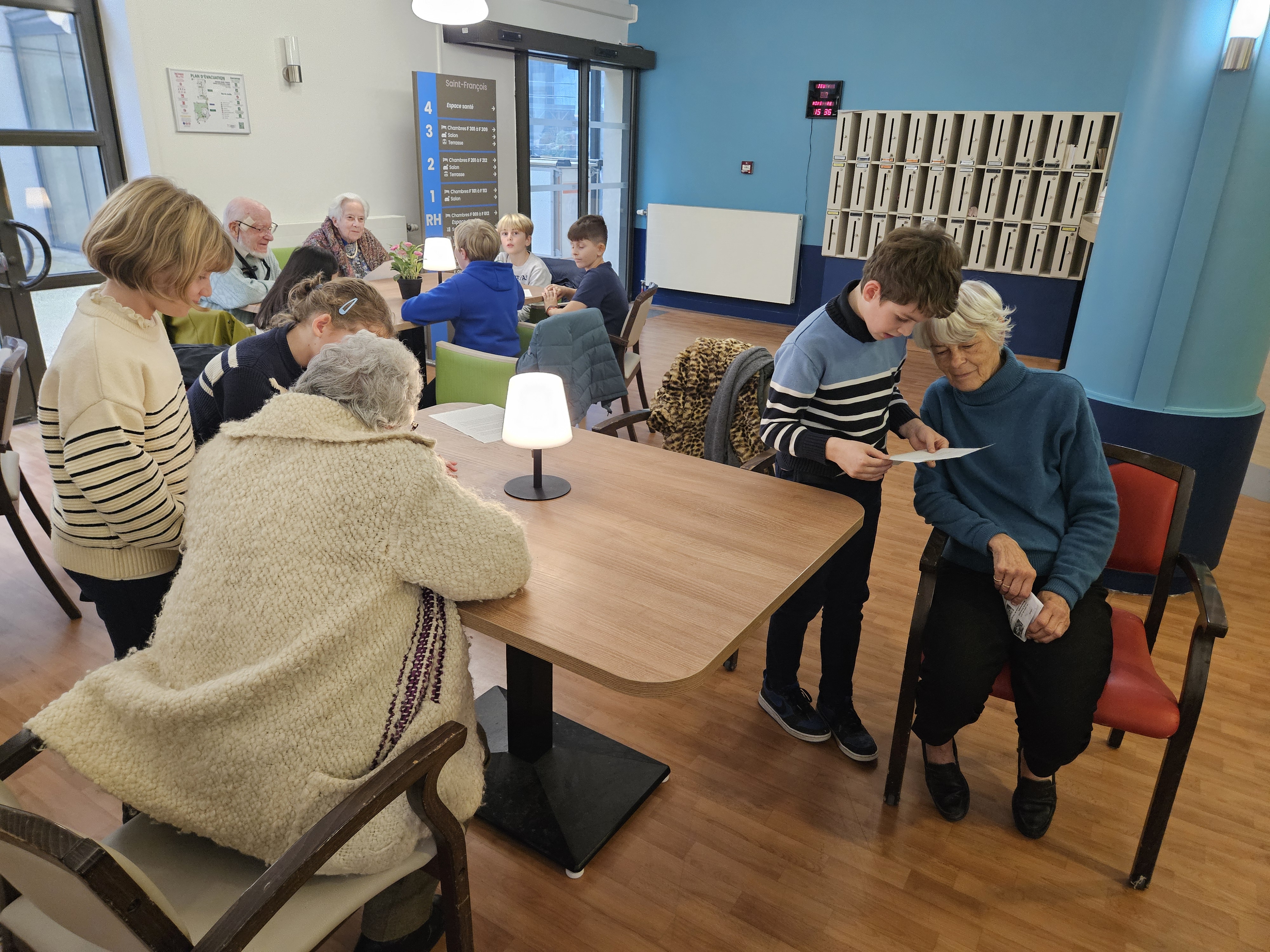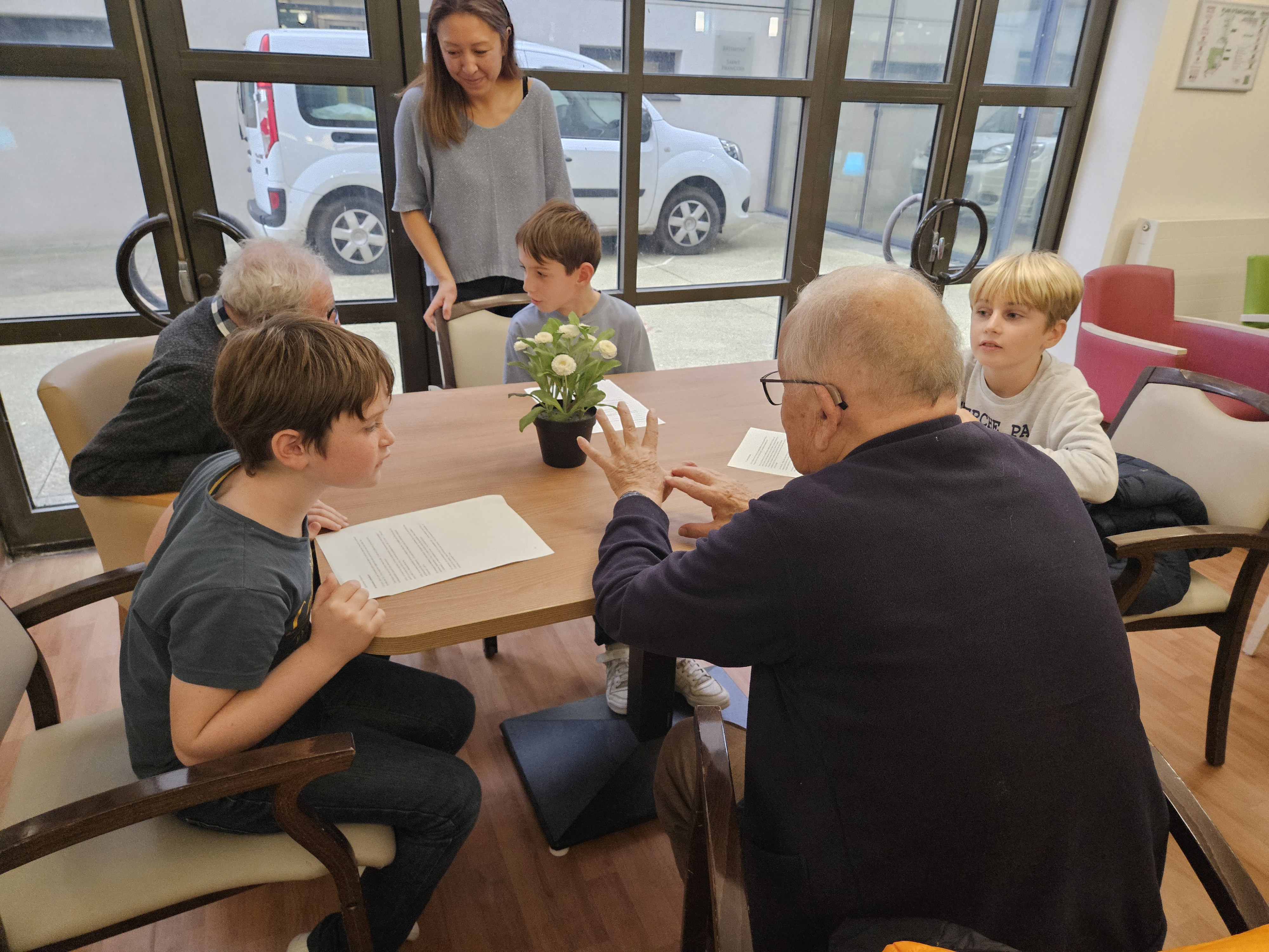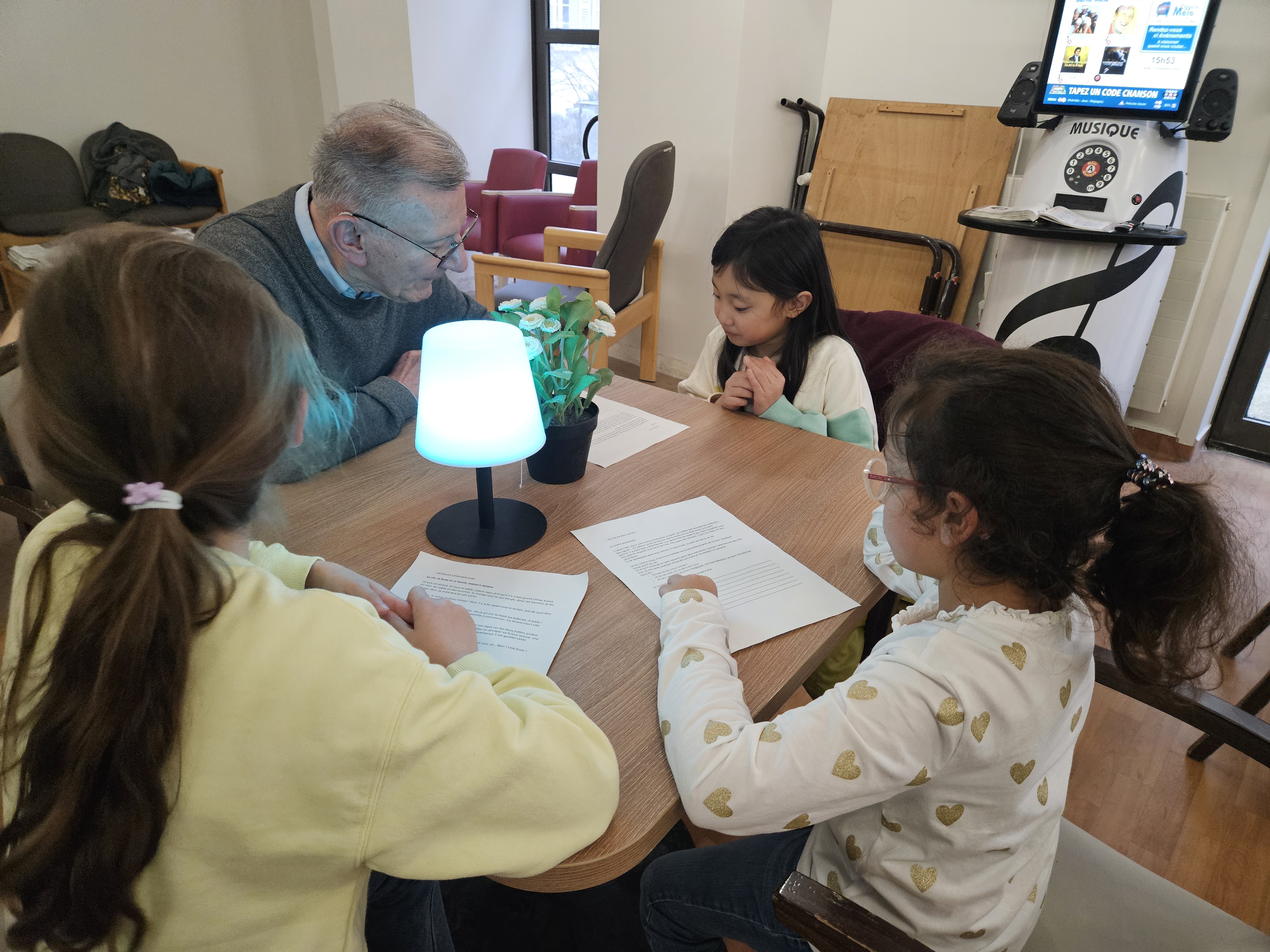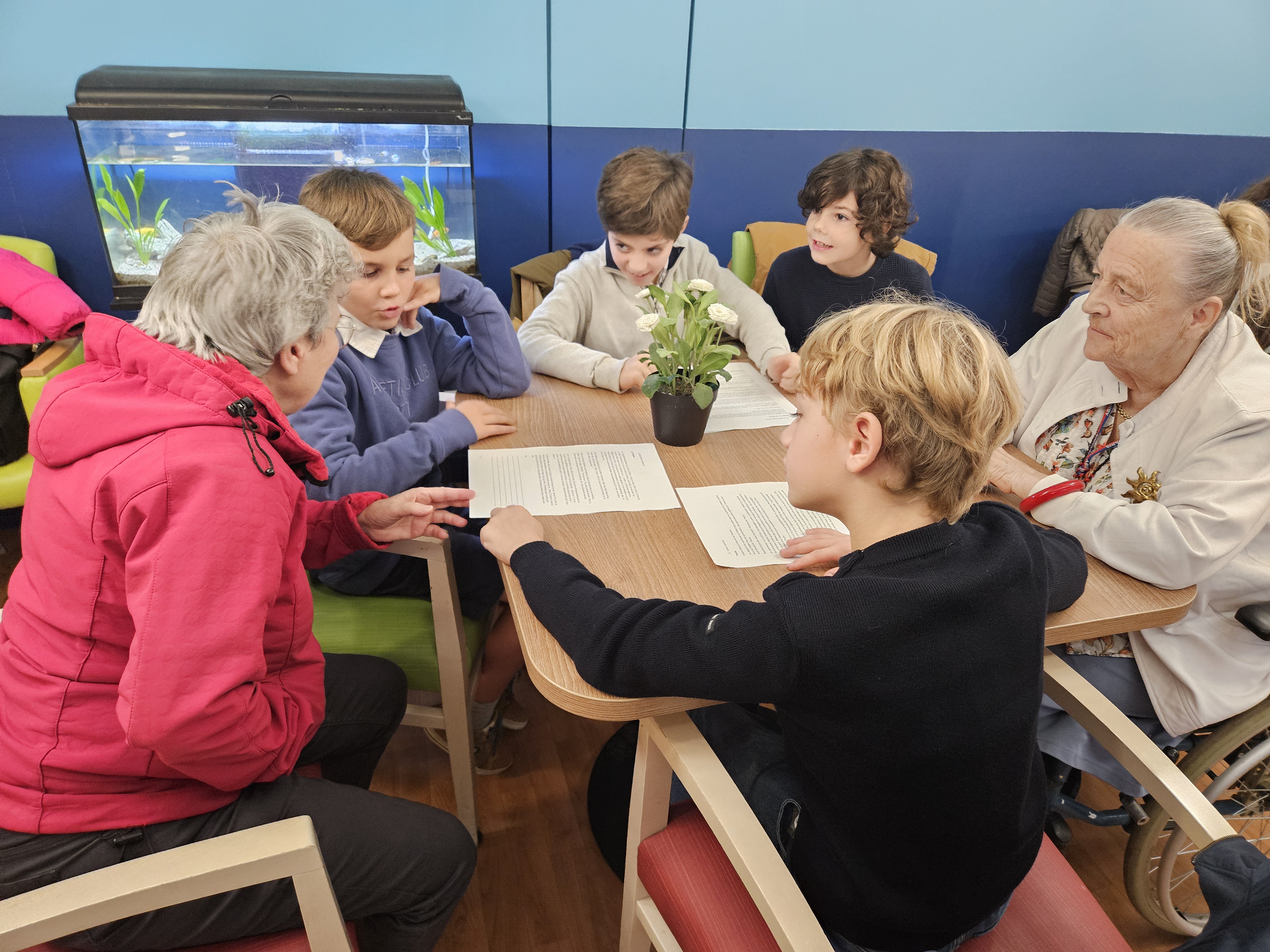 Les élèves de CM1 B ont visité la maison de retraite Marie-Thérèse. Ce fut l'occasion pour les enfants de lire aux anciens leurs textes, et d'échanger de manière informelle. Ils ont même eu droit à un moment musical improvisé.
