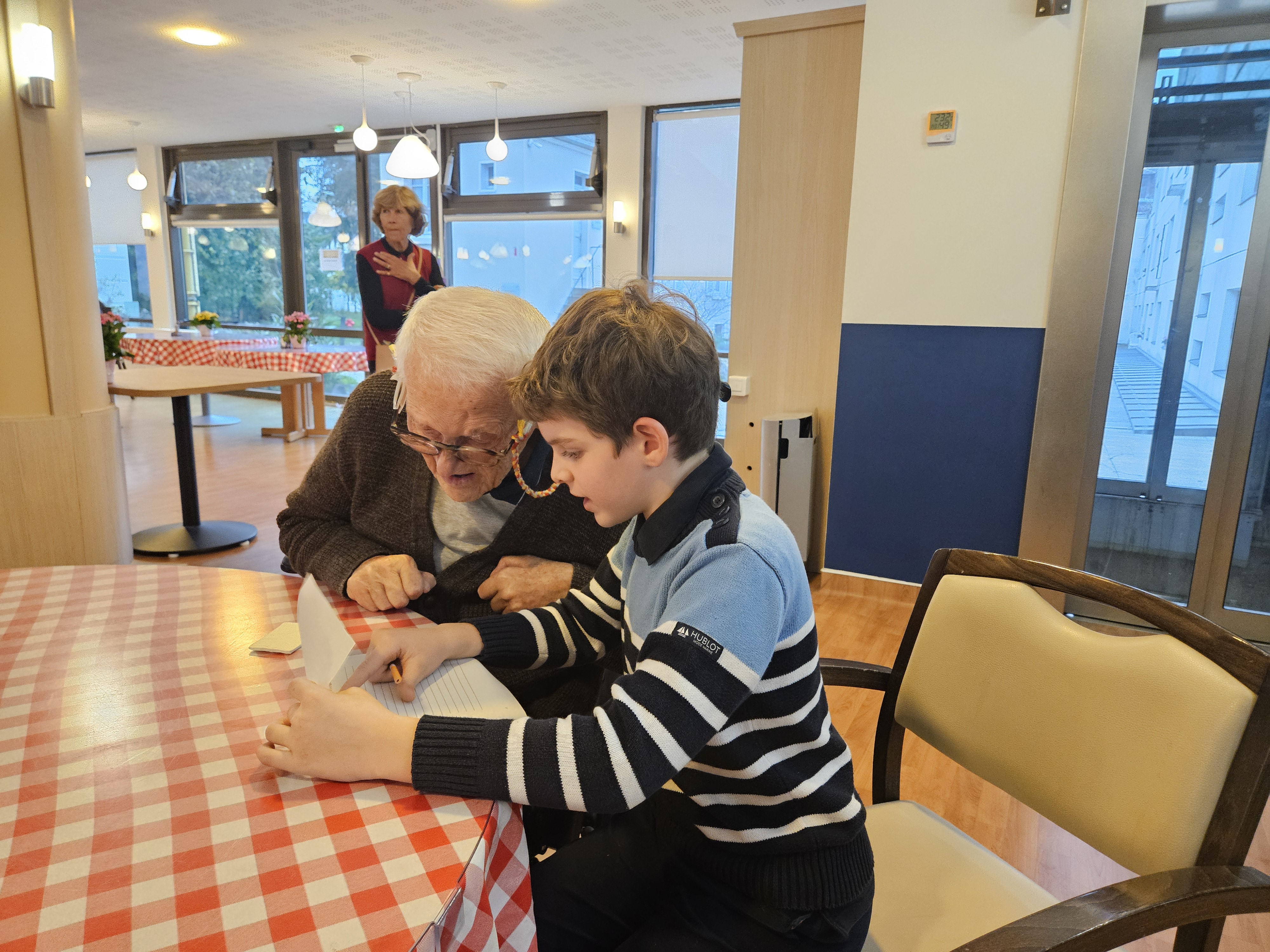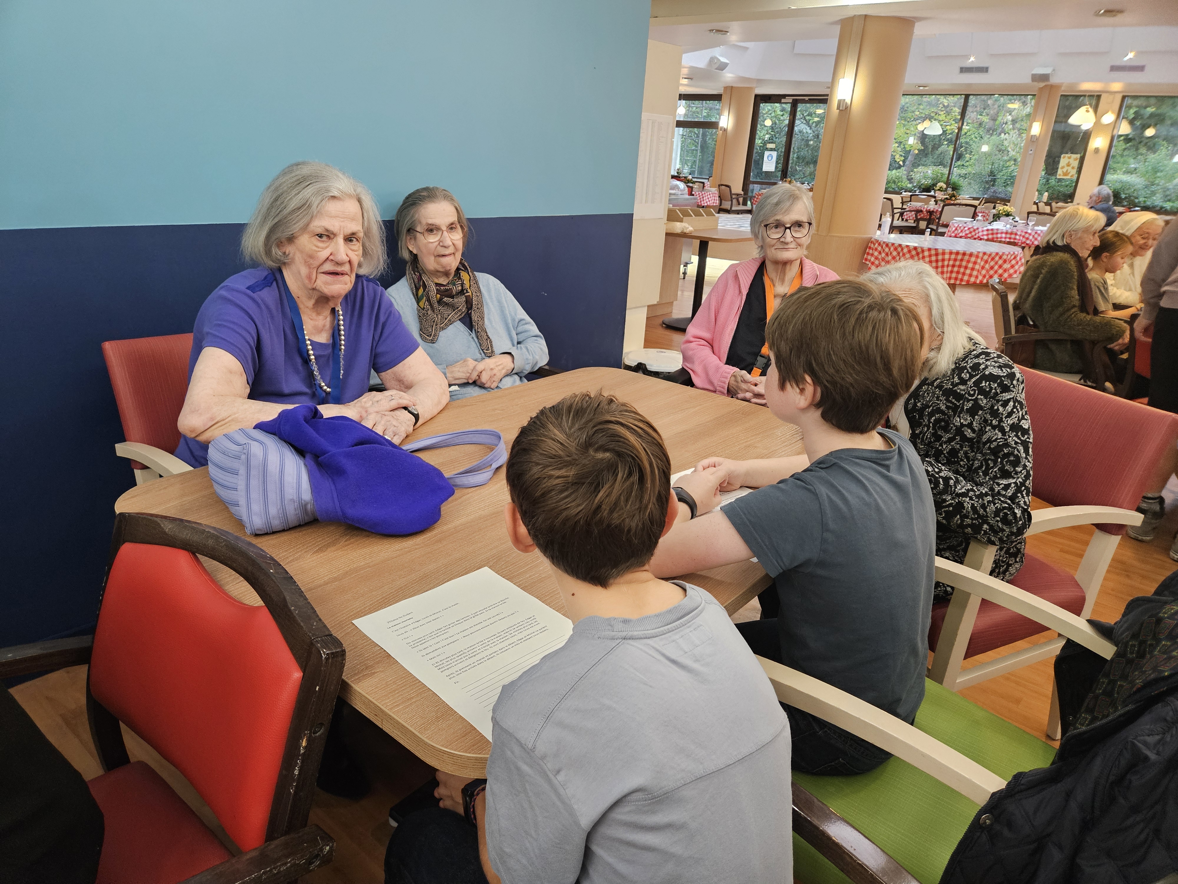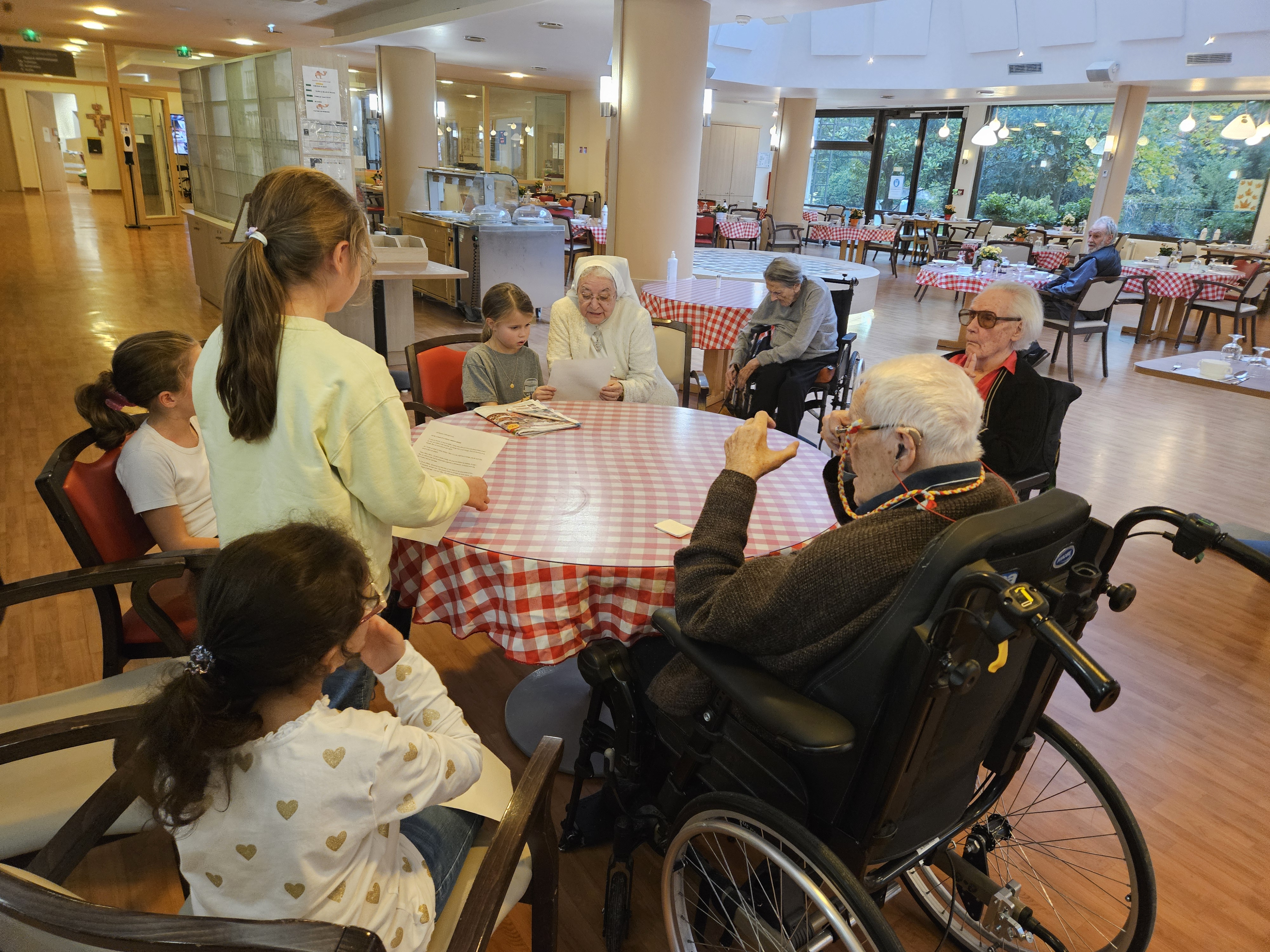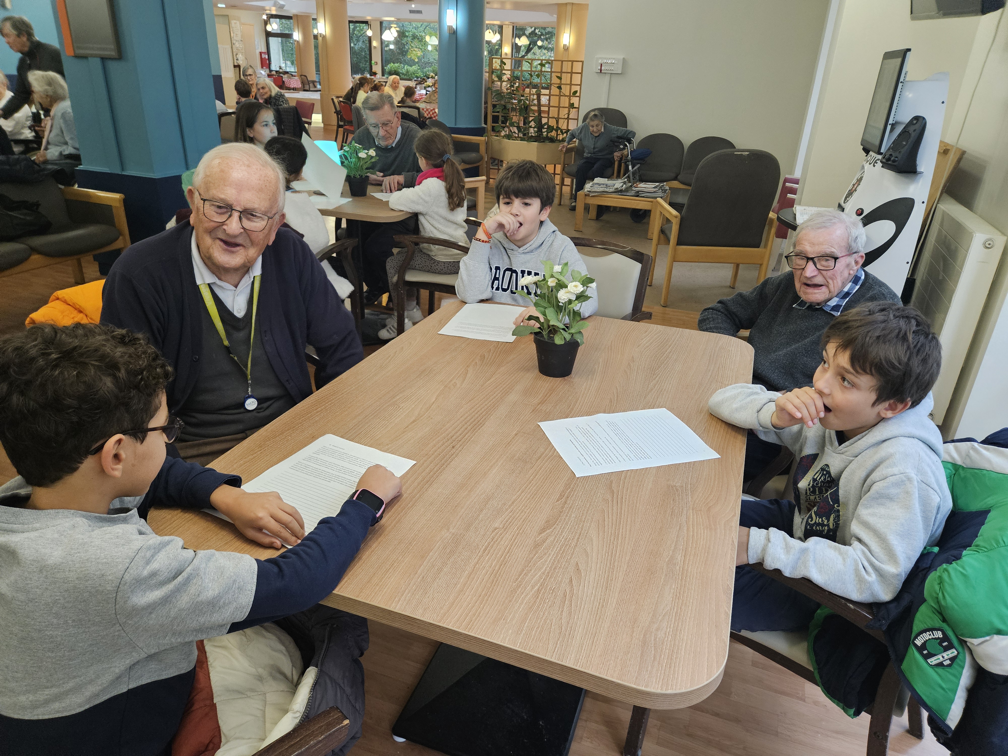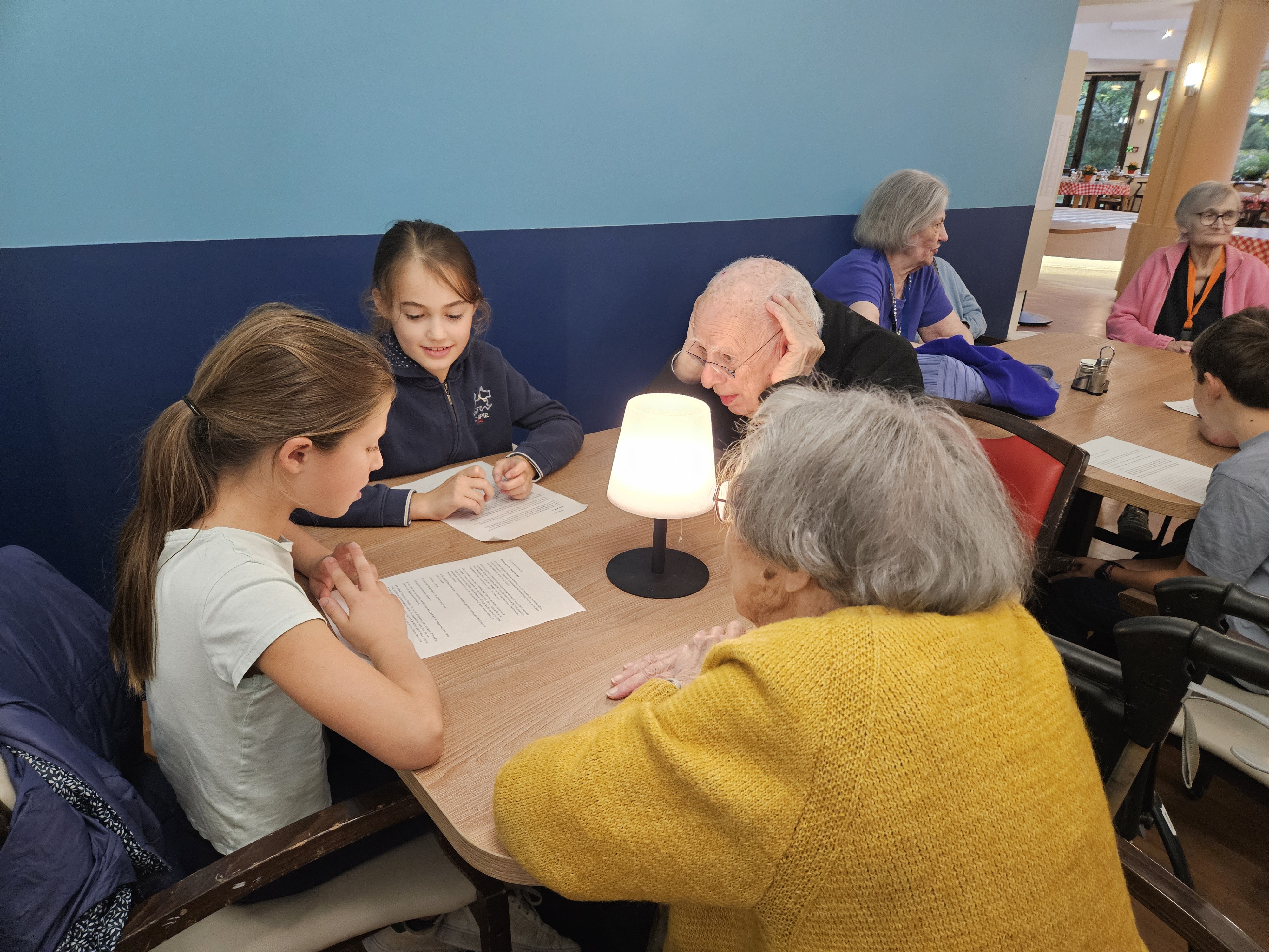 Les élèves de CM1 B ont visité la maison de retraite Marie-Thérèse. Ce fut l'occasion pour les enfants de lire aux anciens leurs textes, et d'échanger de manière informelle. Ils ont même eu droit à un moment musical improvisé.